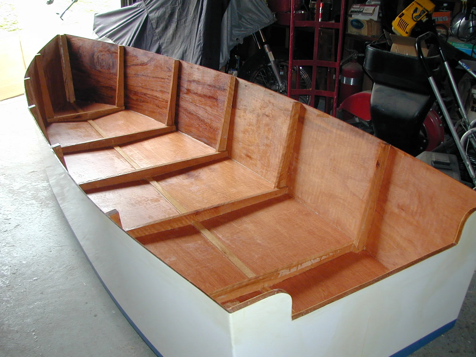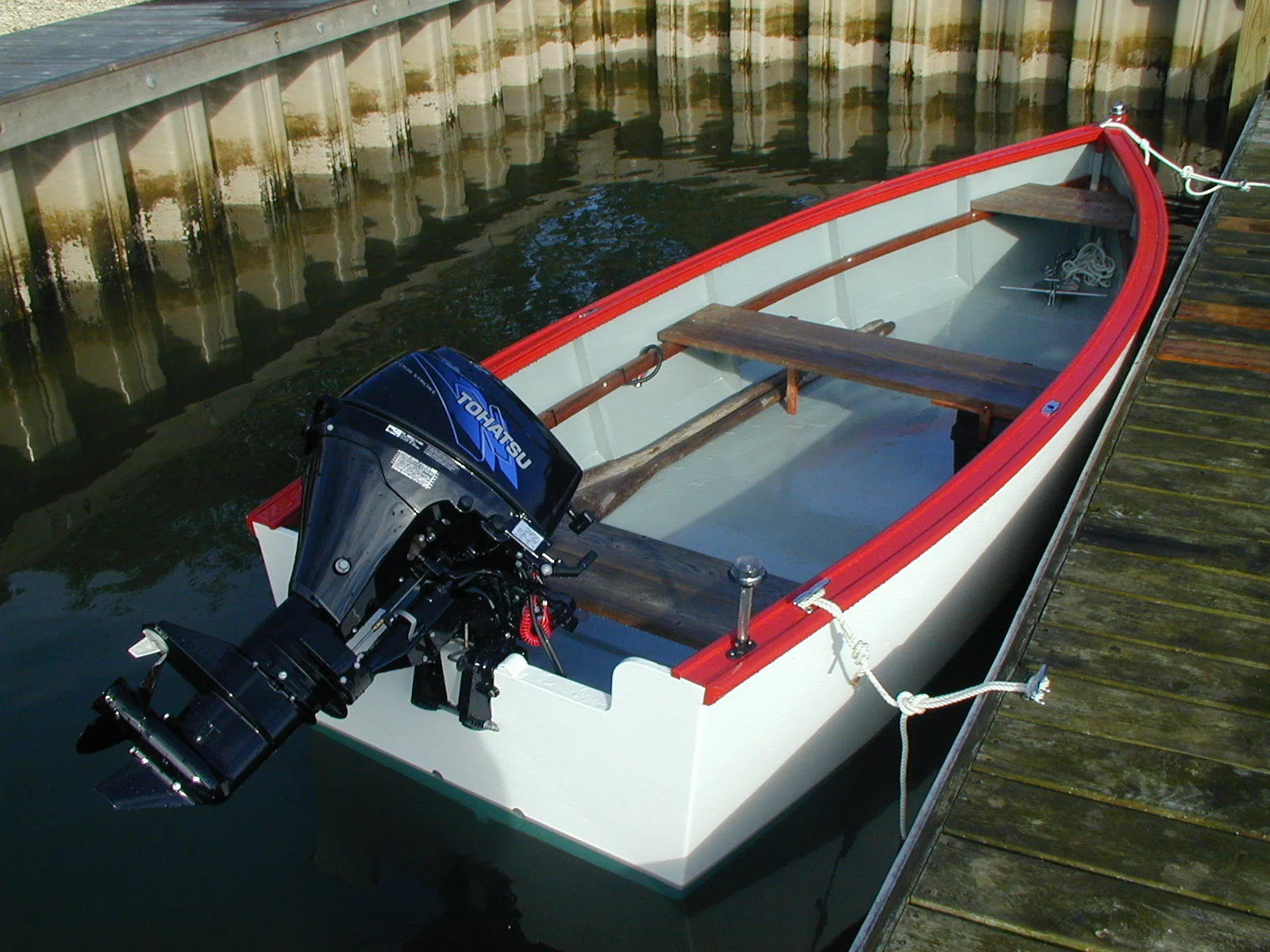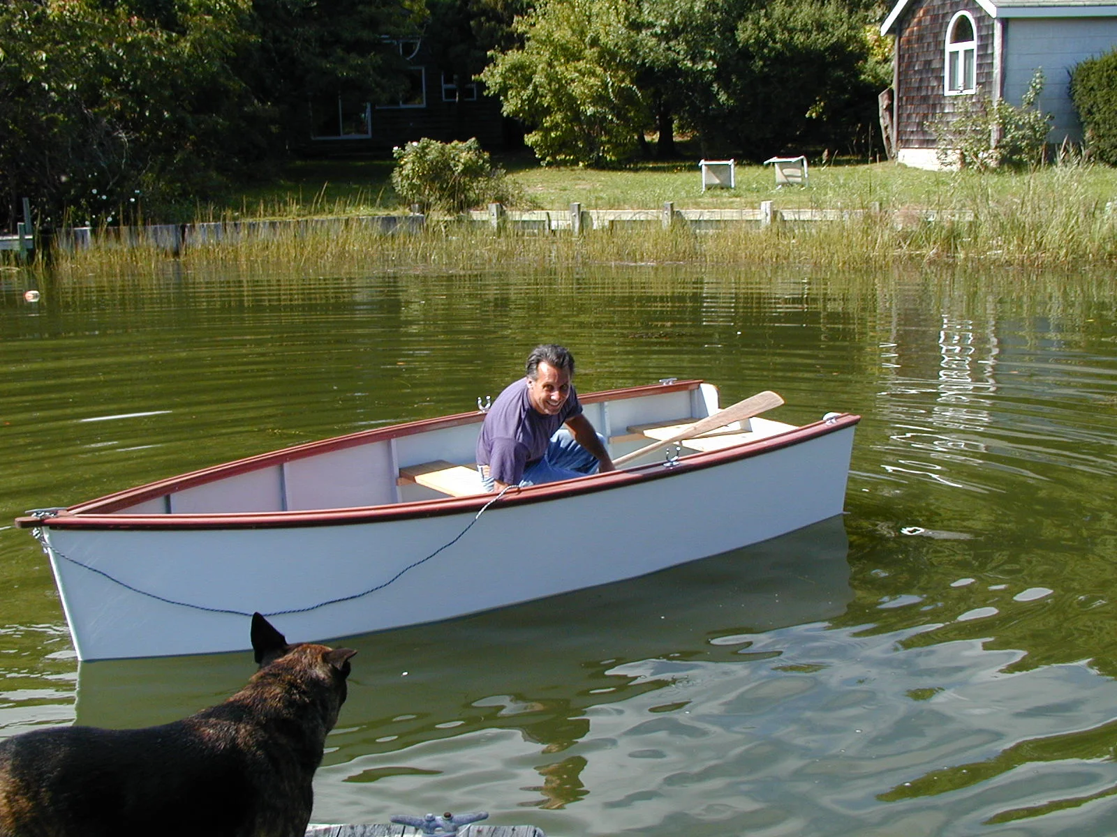Waiting in Kennedy Airport for a flight, I discovered a magazine called "Wooden Boat", so I bought a copy. The idea of building a boat intrigued me. A few months later somebody threw a 5hp Honda outboard in my jobsite dumpster. The thing looked brand new so I took it home, put some gas in and it started right up. That's when I decided to build this boat. After the boat was completed I found out the outboard had a broken drive shaft and a new one cost more than the engine was worth so it ended up back in the dumpster and I found a set of oars.