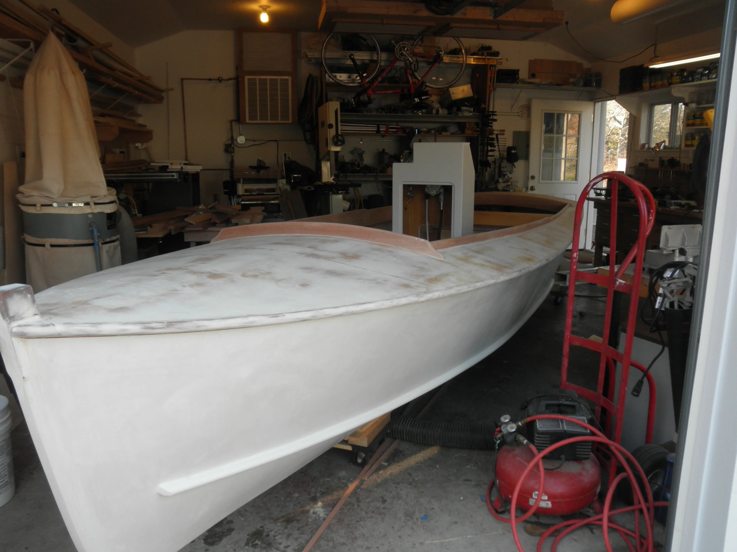 Once again I was inspired by an article in "Wooden Boat" magazine. It was a story of an 18 year old Virginia boy who built this beautiful shallow water boat. Two things struck me. This boat was capable of going full speed in 6" of water which was perfect for the shallow bays where I live. Second, I said to myself, if an 18 year old can build this then I can too.